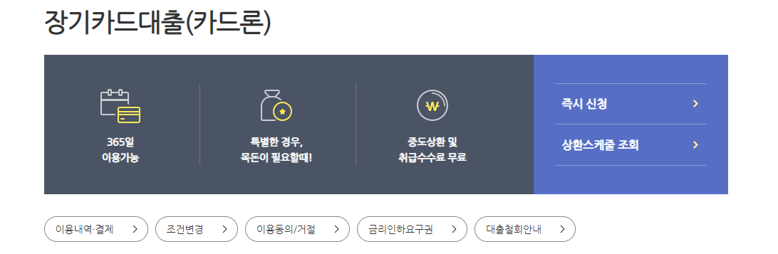- 장기카드대출 자격 기간 이내 한도